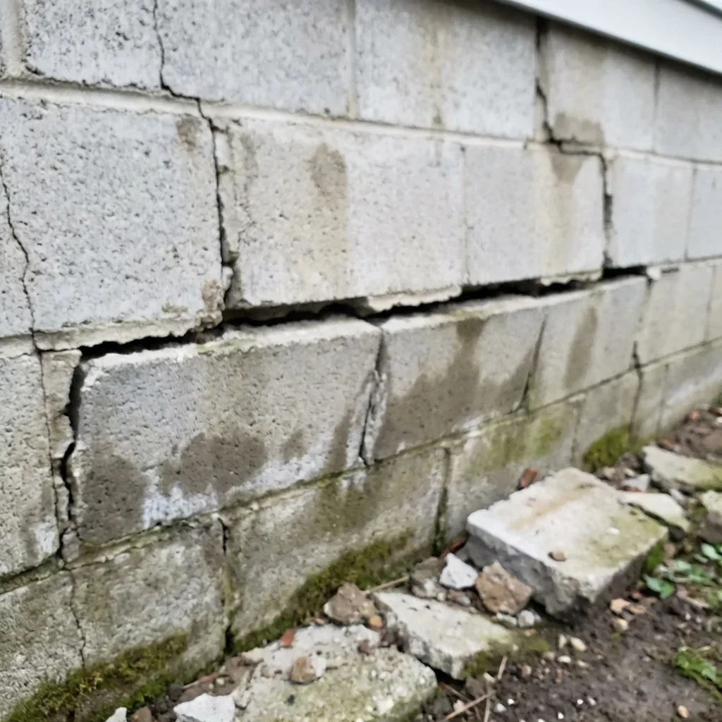 Lateral pressure: Horizontal cracks in basement walls, walls that bow inward, separated corners. Hydrostatic pressure from saturated soil pushes against walls. Common in Appleton and Neenah homes built before modern waterproofing standards.